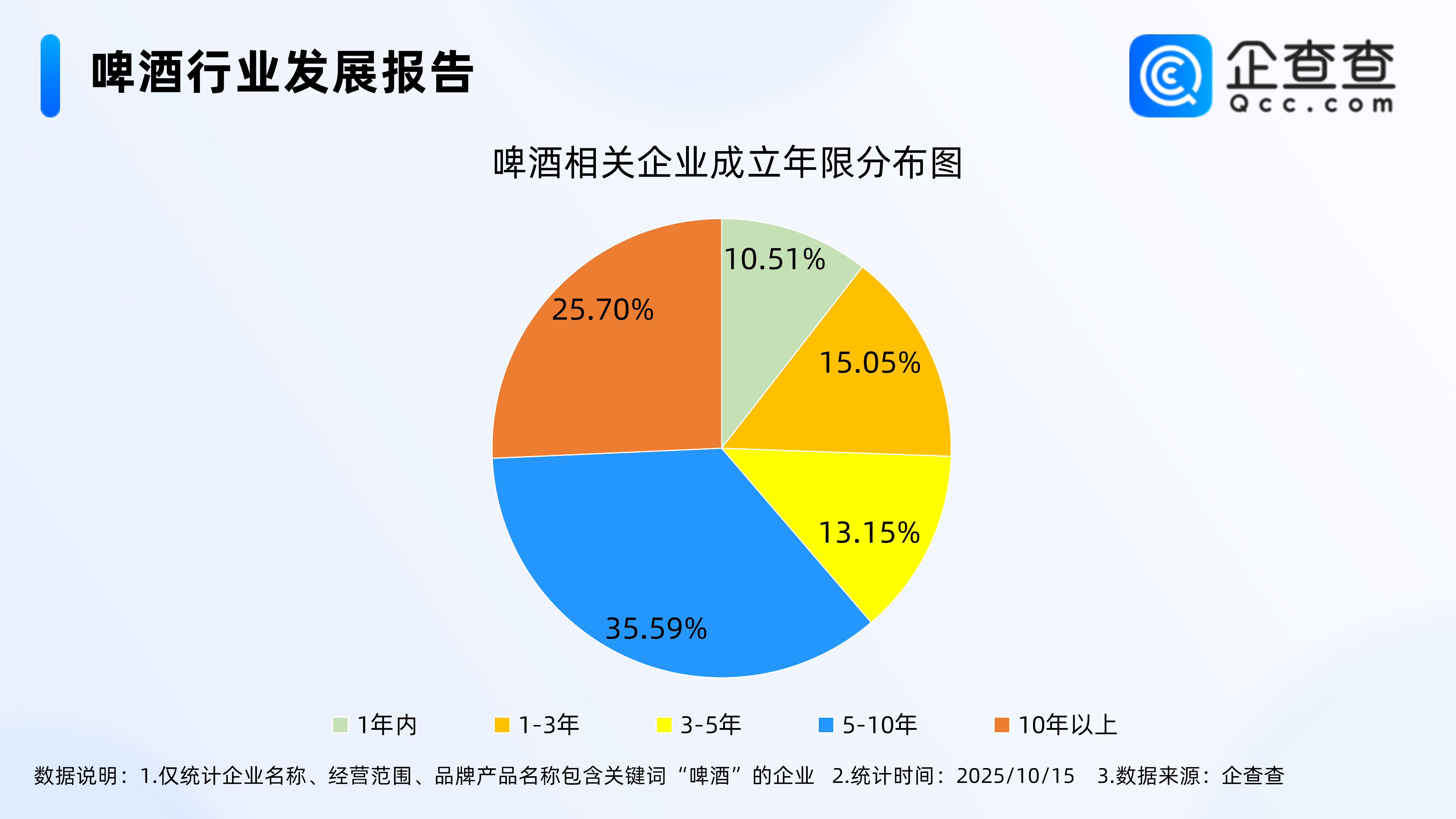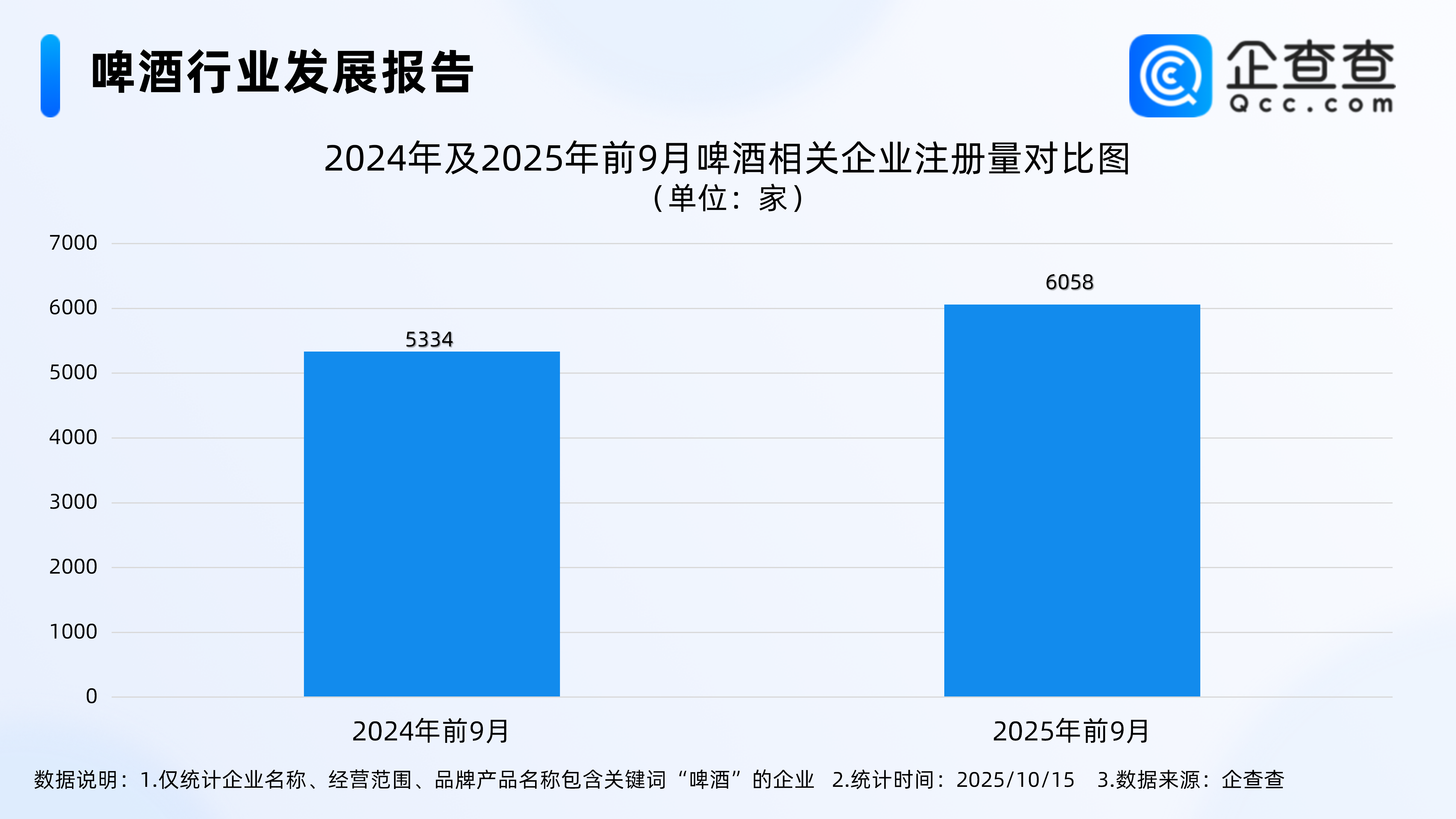 企查查数据显示,截至10月15日,国内现存啤酒相关企业6.48万家。注册量方面,2024年全年注册6441家啤酒相关企业。截至目前,今年已注册6161家,其中前9月注册6058家,同比增长13.57%。2.相关企业多为老牌企业
