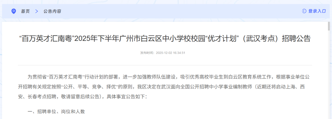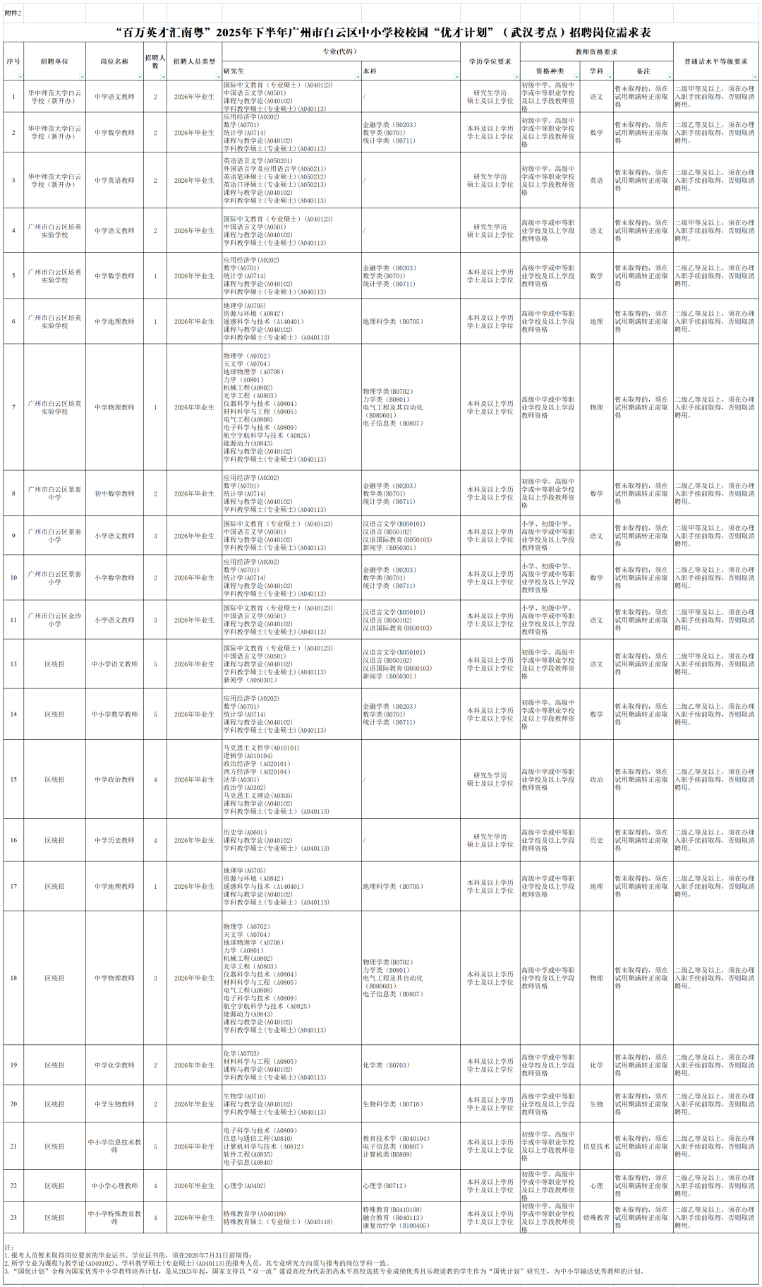 本次招聘工作的相关时间,广州市白云区教育局可根据工作进度做出适当的调整,并将调整时间及时在广州市白云区人民政府门户网站和事业单位招考网(网址:https://bm.gd-pa.cn/dzsys/nyrc)上公布,请参加招聘的考生自行关注相关信息。