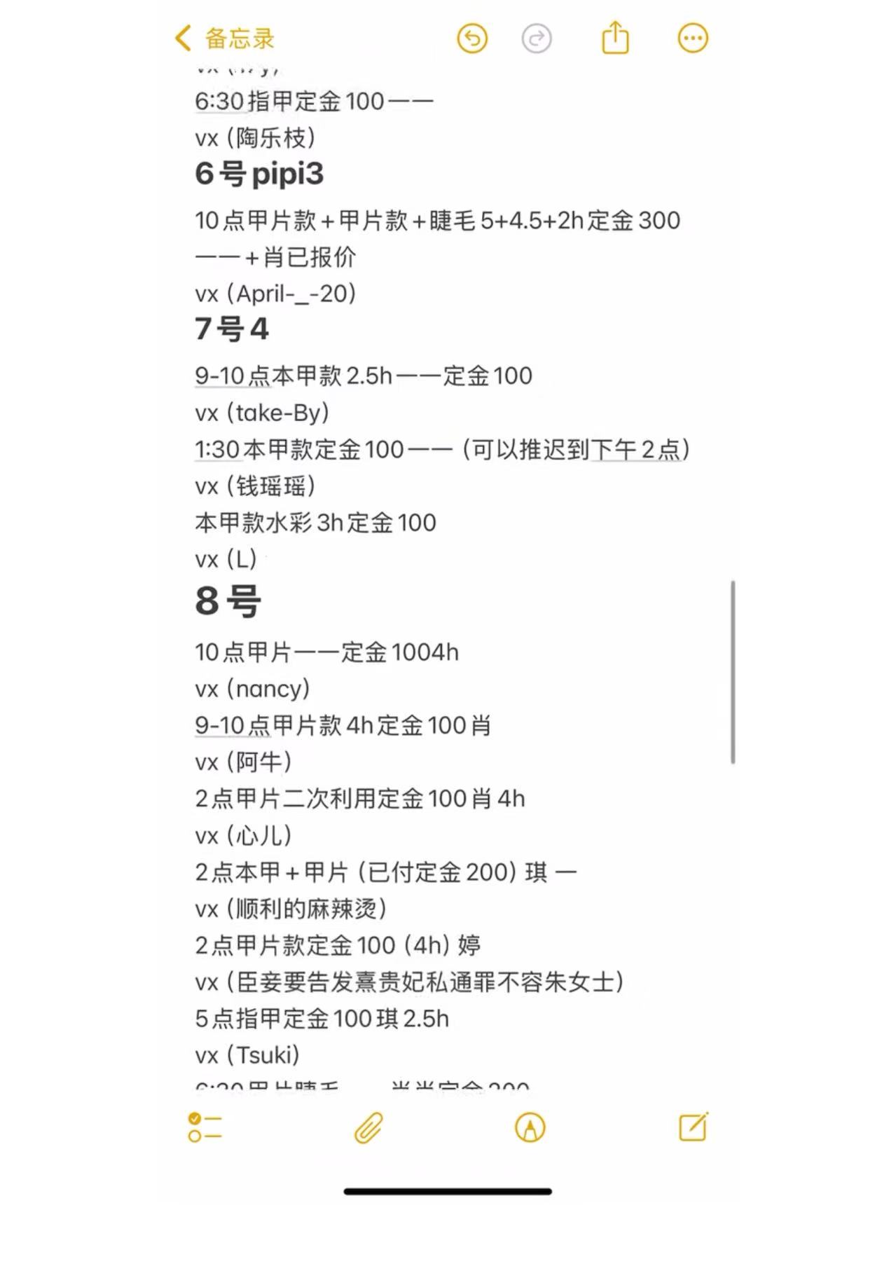 泸州一家美甲店店主丽丽向记者展示了近期的预约记录,每天几乎全满。她介绍,店铺采取定金预约制,营业时间延长至“自然闭店”,繁忙时甚至工作到凌晨。该店并未直接上调会员价,但暂停了平时的折扣优惠,非会员价格则上涨约10%,现场续卡或充值的顾客仍可享受原优惠。